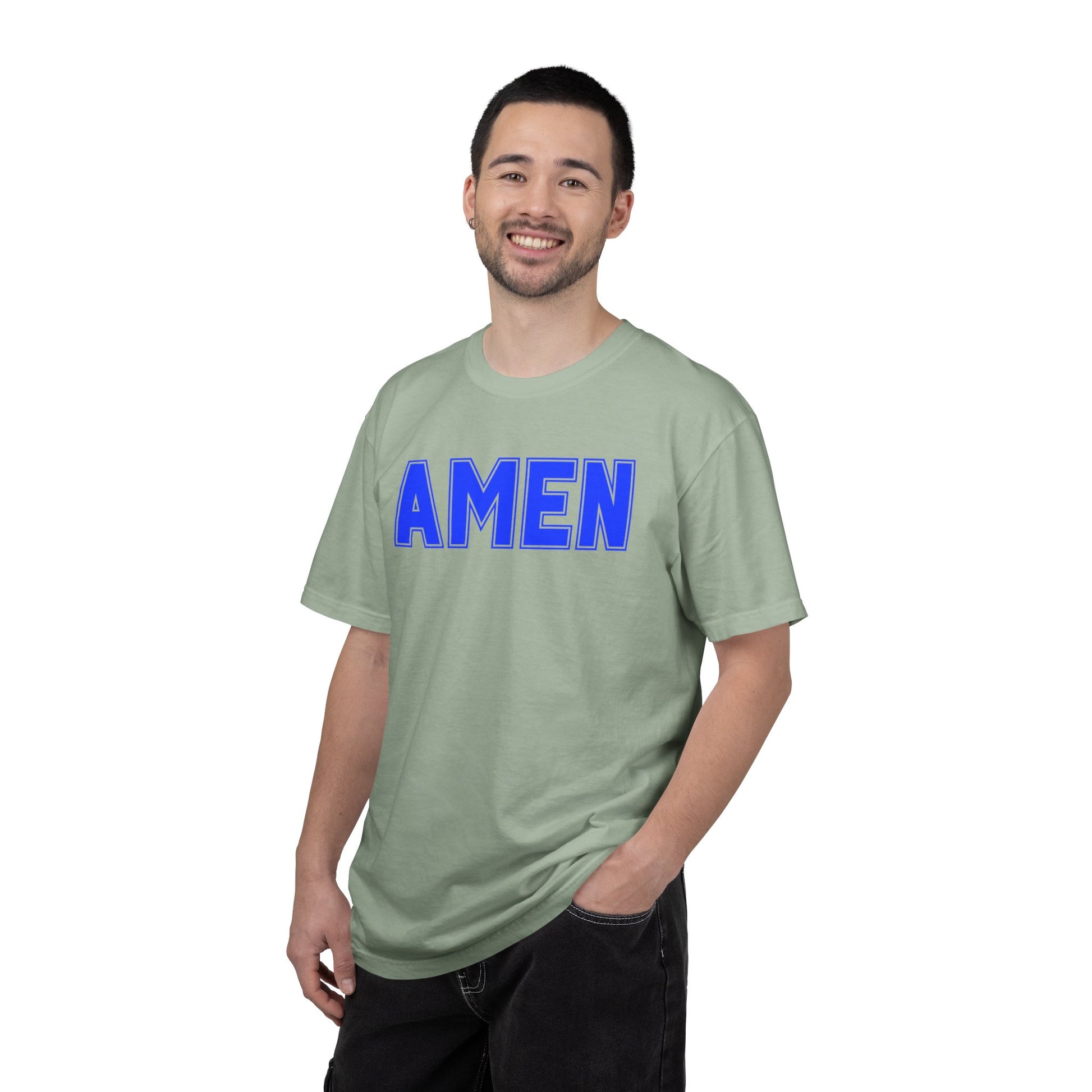 AMEN T-Shirt — Bold Blue Religious Graphic Tee
